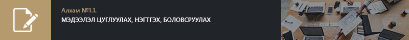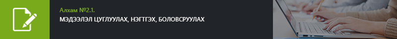 2.1. МЭДЭЭЛЭЛ ЦУГЛУУЛАХ, НЭГТГЭХ, БОЛОВСРУУЛАХ