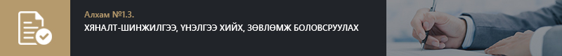 1.3. ХЯНАЛТ-ШИНЖИЛГЭЭ, ҮНЭЛГЭЭ ХИЙХ, ЗӨВЛӨМЖ БОЛОВСРУУЛАХ