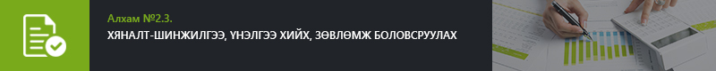 2.3. ХЯНАЛТ-ШИНЖИЛГЭЭ, ҮНЭЛГЭЭ ХИЙХ, ЗӨВЛӨМЖ БОЛОВСРУУЛАХ