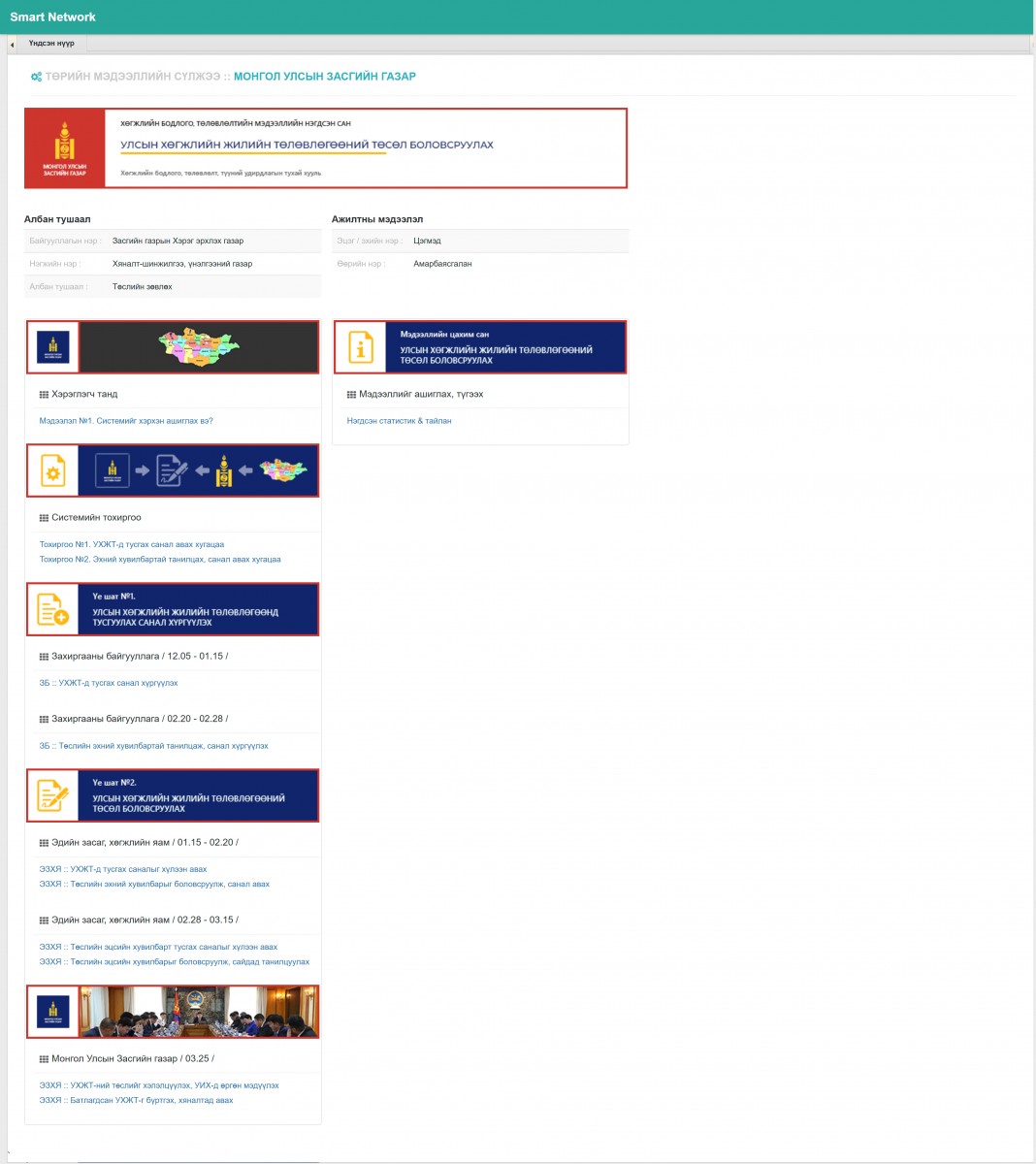 | ЗАСГИЙН ГАЗРЫН ХЯНАЛТ-ШИНЖИЛГЭЭ, ҮНЭЛГЭЭНИЙ МЭДЭЭЛЛИЙН ЦАХИМ САН | |