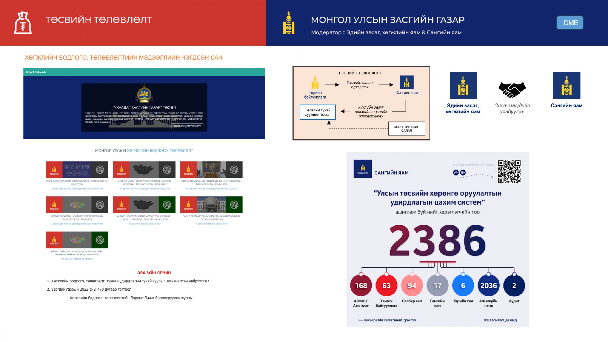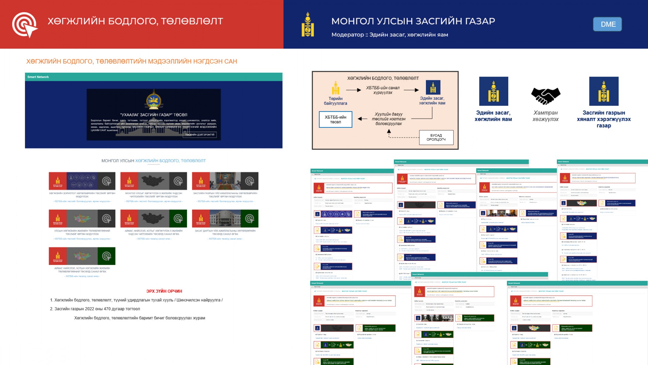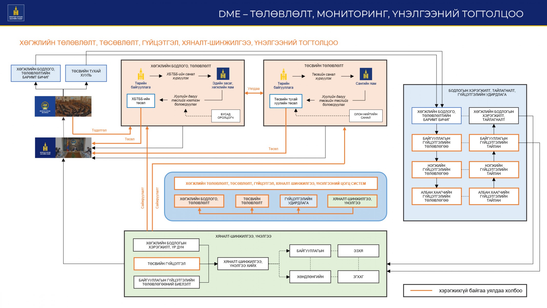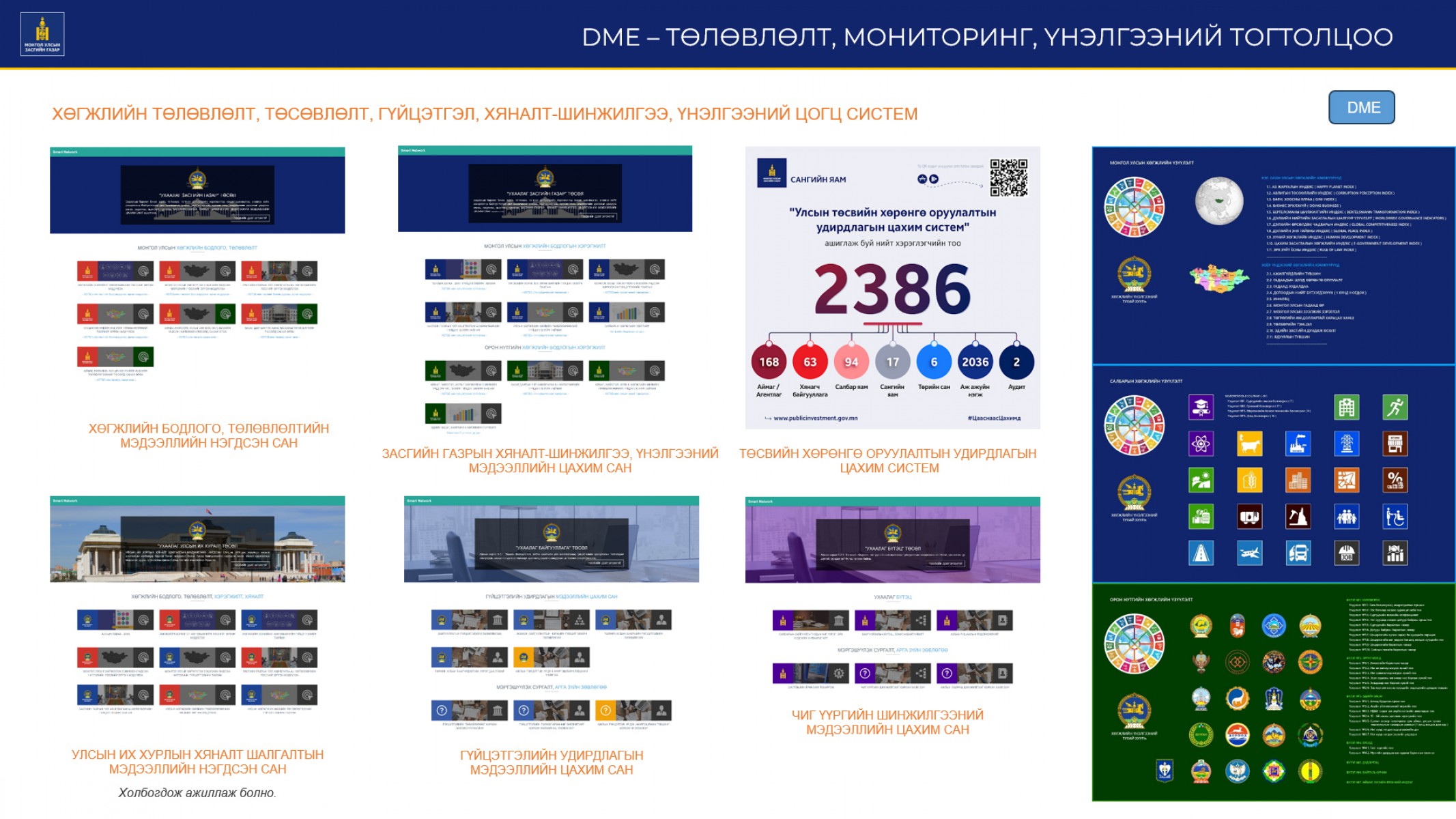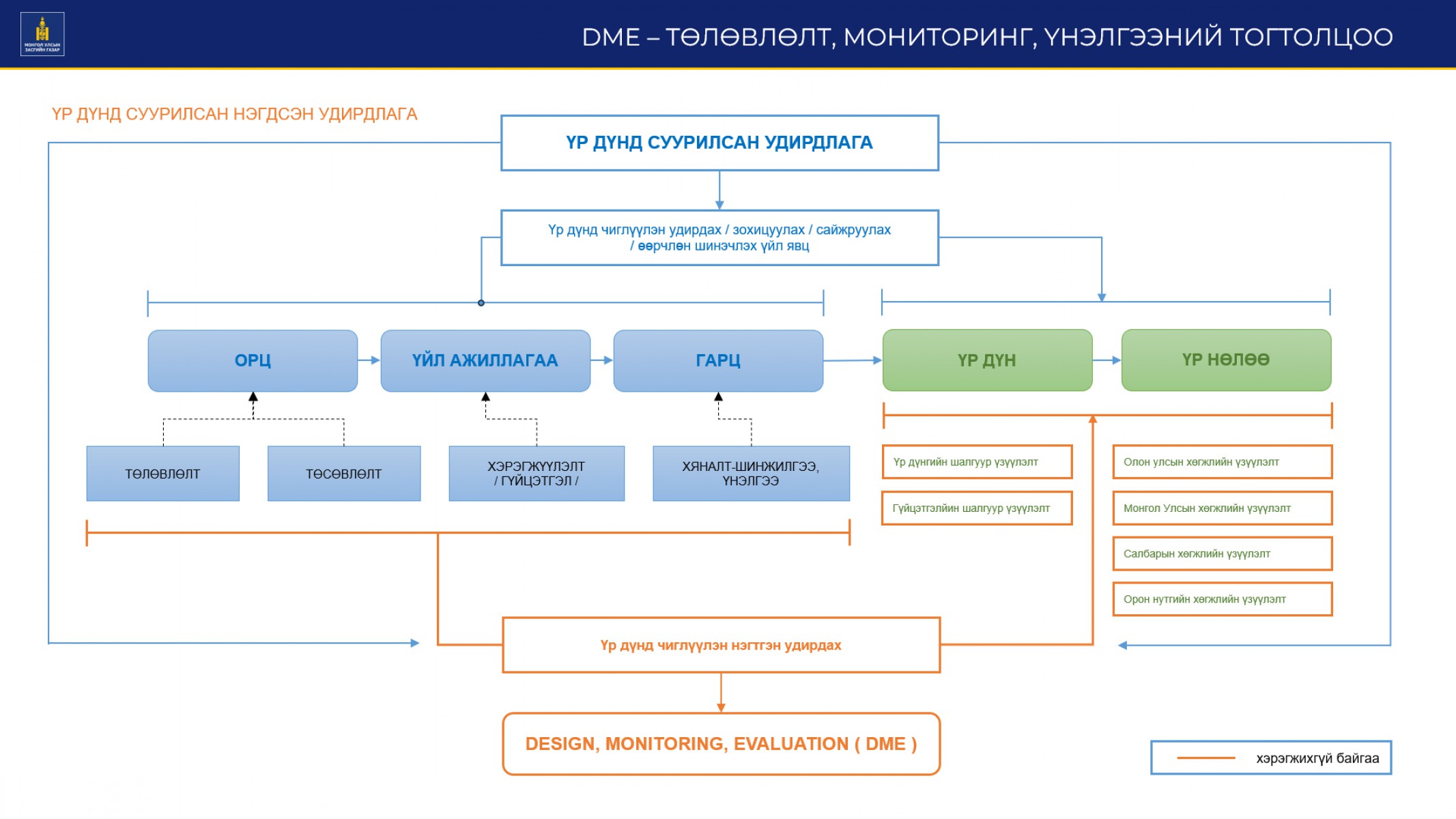 4.2.3.2. Хяналт шалгалтын тогтолцоог сайжруулж, олон улсын үнэлгээний цогц систем / DME-Design, Monitoring and Evaluation /-ийг хөгжүүлж, бодлогын баримт бичгүүдийн хэрэгжилтийн үнэлгээг боловсронгуй болгоно.