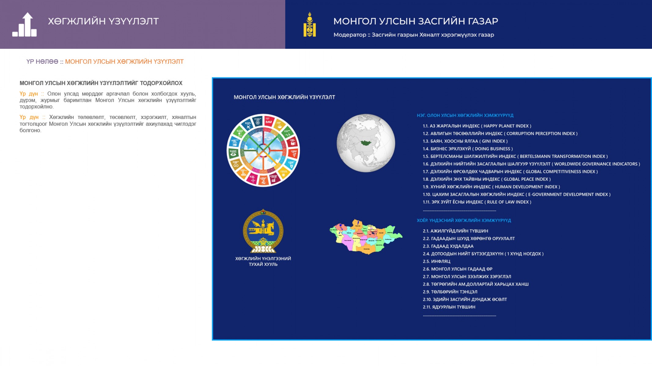 4.2.3.10. Төрийн албан хаагчдын цахим мэдээллийг өөрт нь нээлттэй болгох замаар төрийн албан хаагчийн иж бүрэн цахим платформыг хөгжүүлж, мэдээллийн үнэн зөв, бүрэн гүйцэд байдлыг сайжруулна.