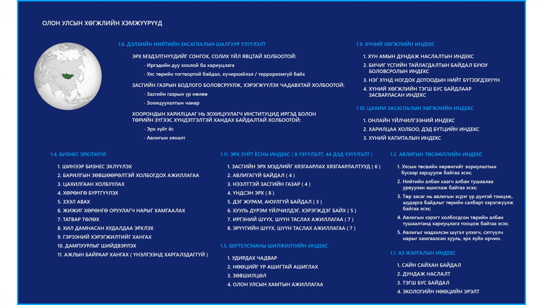 4.2.3.13. Төрийн албаны ёс зүйн индекс, ёс зүйн дэд бүтцийг олон улсын туршлагад суурилан хэрэгжүүлнэ.