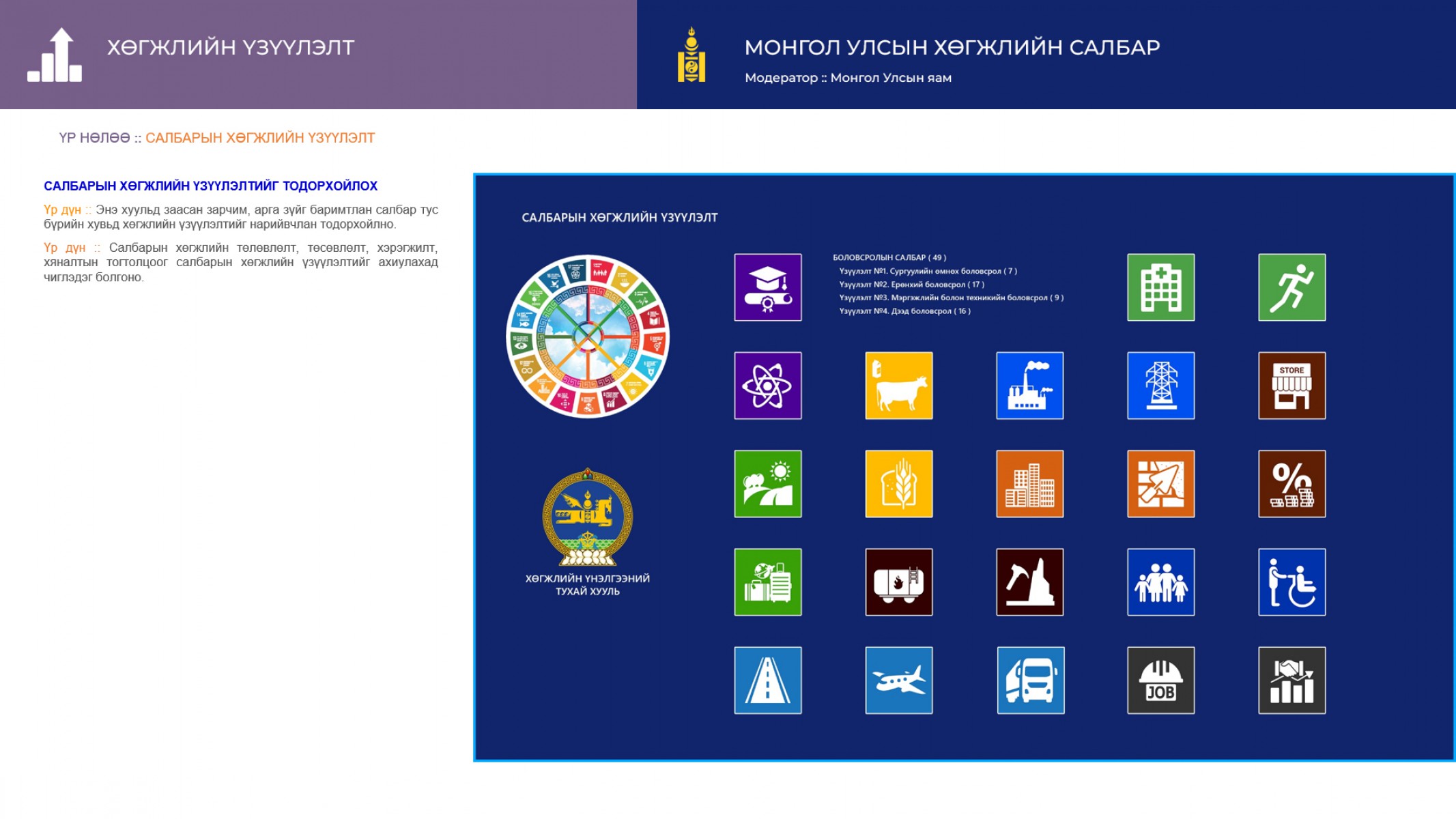 4.2.3.9. Төрийн албан хаагчдын нийгмийн баталгааны зохистой бодлогыг баримтлан орон сууцны хүртээмжийг нэмэгдүүлнэ. Төрийн албанаас эрт тэтгэвэрт гарч байгаа иргэд хөдөлмөр эрхлэх, жижиг, дунд, бичил бизнесийн салбарт ажиллах, орлого олох, баялаг бүтээх боломжийг бүрдүүлнэ.