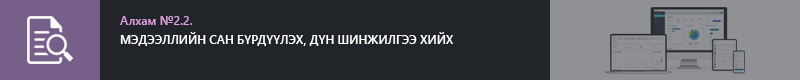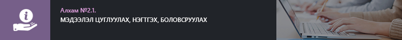 2.1. МЭДЭЭЛЭЛ ЦУГЛУУЛАХ, НЭГТГЭХ, БОЛОВСРУУЛАХ