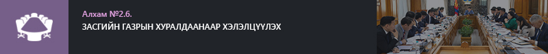 | 2.5.2.1. | Засгийн газрын хуралдаанаар дараах асуудлыг хэлэлцэнэ. |
