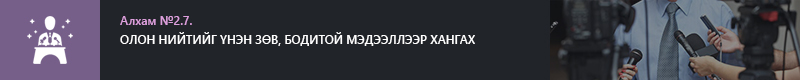 1.1. МЭДЭЭЛЛИЙГ ЦУГЛУУЛАХ, НЭГТГЭХ, БОЛОВСРУУЛАХ